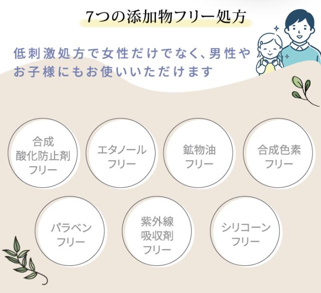水・ココイルグリシンK・BG・グリセリン・クエン酸・ラウリン酸ポリグリセリル・10・ラウラミドプロピルヒドロキシスルタイン・リンゴ果実培養細胞エキス・フェニルエチルレゾルシノール・レスベラトロール・フラーレン・ヒト遺伝子組換オリゴペプチド・1・ヒト遺伝子組換ポリペプチド・10・アルガニアスピノサ核油・白金・オリーブ果実油・ブロメライン・ホホバ種子油・水溶性プロテオグリカン・水溶性コラーゲン・乳酸桿菌/セイヨウナシ果汁発酵液・ザクロ果実エキス・トマト果実エキス・アセロラ果実エキス・カンゾウ根エキス・ノイバラ果実エキス・ユズ果実エキス・クダモノトケイソウ果実エキス・スクワラン・マンニトール・ティーツリー葉油・ユーカリ葉油・アラキジルグルコシド・ベヘニルアルコール・アラキジルアルコール・ジステアリン酸グリコール・トコフェロール・デキストリン・クオタニウム・73・シリカ・銅クロロフィリンNa・ココイルグリシンNa・アルムK・ポリソルベート80・キサンタンガム・レシチン・クエン酸Na・メタリン酸Na・フェノキシエタノール・香料
