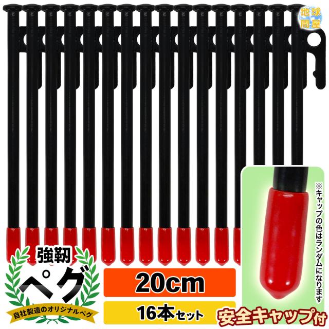 ペグ 20cm 16本セット 強靭 スチールペグ キャンプ テント タープ 設営 レーザー溶接 伸線加工 防錆塗装 安全キャップ付き
