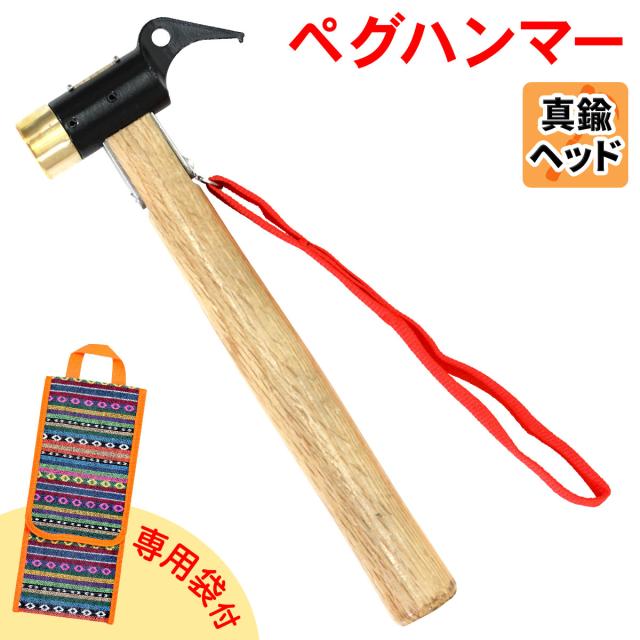 ペグハンマー 真鍮 ヘッド 木製 ハンドル キャンプ アウトドア ペグ ハンマー M-STYLE 専用袋付き