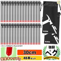 ペグ 30cm 48本セット 強靭 スチールペグ キャンプ テント タープ 設営 レーザー溶接 伸線加工 防錆塗装 安全キャップ付き