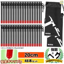 ペグ 20cm 48本セット 強靭 スチールペグ キャンプ テント タープ 設営 レーザー溶接 伸線加工 防錆塗装 安全キャップ付き