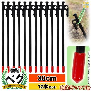 ペグ 30cm 12本セット 強靭 スチールペグ キャンプ テント タープ 設営 レーザー溶接 伸線加工 防錆塗装 安全キャップ付き