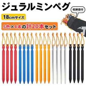 ジュラルミン ペグ テント タープ 固定具 BBQ キャンプ設営用具 20本セット 収納袋付き 18cmサイズ