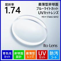 眼鏡 メガネ 度付き レンズ ブルーライトカット 紫外線カット UVカット 最薄型 非球面 1.74 ITO マキシマ174AS SKY2 メガネレンズ