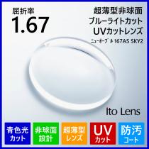 眼鏡 メガネ 度付き レンズ ブルーライトカット 紫外線カット UVカット 超薄型 非球面 1.67 ITO ニューオーブル167AS SKY2 メガネレンズ