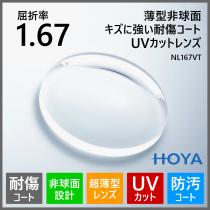 眼鏡 メガネ 度付き キズに強い レンズ 紫外線カット UVカット 超薄型 非球面 1.67 HOYA NL167VT メガネレンズ