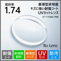 眼鏡 メガネ 度付き キズに強い レンズ 紫外線カット UVカット 最薄型 非球面 1.74 ITOレンズ シグマ174AS TRN メガネレンズ