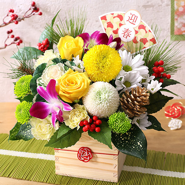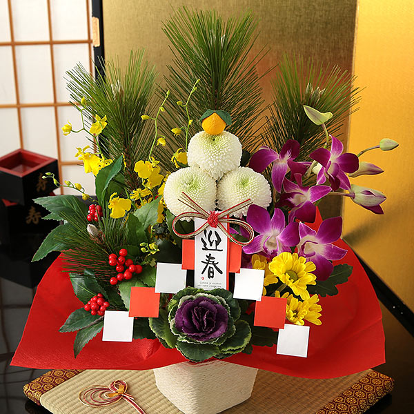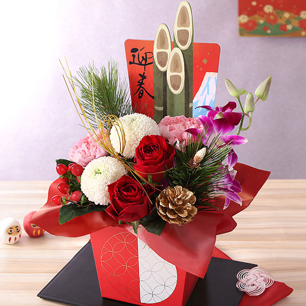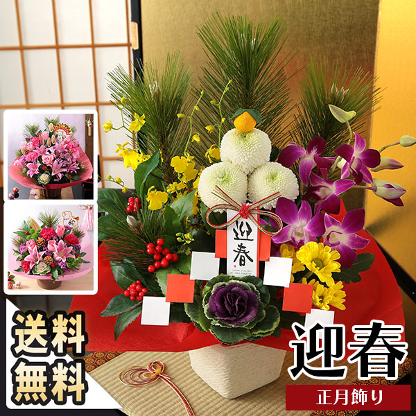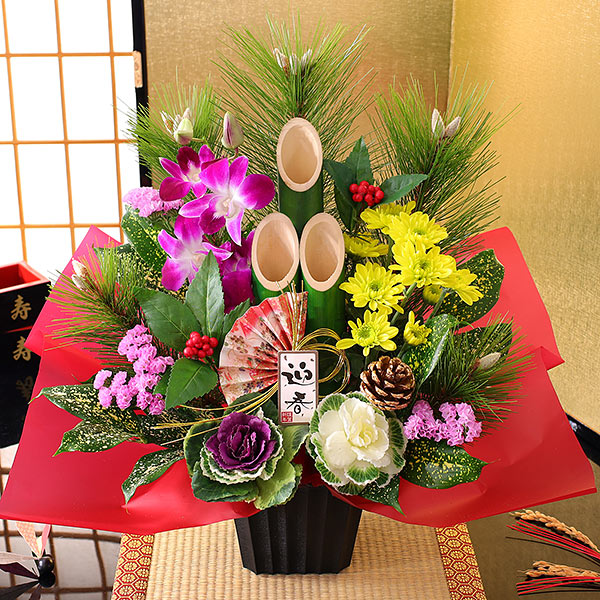 2026 迎春 花 門松 アレンジメント イベントギフトF 送料無料 お正月 正月飾り 年賀 フラワー ギフト 部屋 玄関 竹 置物 おしゃれ 水引
