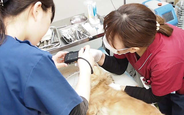 ![]() ![]() 現在、3歳以上の犬の8割が歯周病といわれています。また、歯周病の細菌は臓器に悪影響を与える場合も…。正しい知識を深め、適切なデンタルケアで愛犬の健康を守ってあげましょう。 ![]() ・歯周病 ・歯肉炎 ・歯周炎 ■歯周病 犬のお口のトラブルで最も多い疾患。初期段階の症状は「歯肉炎」、進行してし歯肉以外にも炎症が及ぶと「歯周炎」と呼ばれます。 ![]() ■歯肉炎 歯肉溝に食べかすなどがたまり細菌が繁殖。歯は黄色や茶色っぽくなり、歯肉が赤く腫れます。 ■歯周炎 歯肉溝が深くなり、細菌がさらに繁殖し、バイオフィルム※を作り出す。歯肉の赤みと腫れは増し、歯垢や歯石が増加。口臭が感じられるようになり、場合によっては痛みが伴うことも。 ※バイオフィルムとは… バリアの役割を果たす、ぬるっとした粘膜状の物質をバイオフィルムといいます。抗生剤が細菌まで到達するのを妨げ、薬での治療が困難とされる一因。 ![]() ![]() 犬の口内環境は人と異なり、虫歯がほとんど無いかわりに、人よりも歯周病になりやすいという特徴があります。そして、歯周病は歯だけの病気ではなく、歯と歯肉(歯茎)の隙間(歯肉溝)で起こるため、見えている歯はきれいでも、外から見えない歯肉溝の中で進行していることがある厄介な病気です。 獣医師でもレントゲンを撮らないときちんとした診断が難しい場合もあります。 ![]() ![]() 歯周病を起こす細菌は歯肉だけに留まりません。歯根部から深部に感染が広がり、上顎だと、口腔と鼻腔の間の骨が溶けて鼻血が出たり、下顎では顎骨を溶かし、最終的には骨折してしまうことも。 また、細菌が血流に乗って全身に運ばれ、心臓や腎臓などの大切な臓器に悪影響を与えることも考えられます。実際、歯周病がひどい子は心臓病になる確率が高いという米国の統計データも報告されています。 ![]() ![]() スケーリング(歯石除去)で歯の上の歯石を取り除くとキレイになりますが、これだけでは歯周病は治りません。なぜなら、歯周病を引き起こしているのは、歯石ではなく歯垢だからです。歯垢は単なる食べカスではなく、その約70%は細菌です。それが歯肉溝の中で増殖し、歯周病が起こります。 歯垢が石灰化してできる「歯石」の状態では、細菌は死滅しており、体に悪影響を及ぼすことはないです。ただし、歯石が付着すると歯の表面に凸凹ができて歯垢が付きやすくなり、細菌が増殖しやすい環境になるので、除去すること自体は大切です。 ![]() ![]() 進行した歯周病の治療はおおむね麻酔をかけて行います。麻酔のリスクを必要以上に恐れて治療をためらう飼い主さんもいらっしゃいますが、そのために歯周病の処置が遅れると愛犬の体への危険度を高めてしまいます。もちろんリスクはゼロではないので、麻酔をするときには事前に検査をして、安全に麻酔をかけることができるかどうかを判断します。万が一、麻酔当日の体調が悪そうな場合は中止することもできます。また、乳歯が残っている子は避妊去勢手術の時にもできます。 無麻酔スケーリングを行う所もあるようですが、前述したとおり、歯石を取り除くだけでは、見た目はきれいになりますが歯周病の根本治療にはなりません。 ![]() ![]() 歯周病はデンタルケアの実践で、ある程度予防できます。犬の歯垢は約4日間で歯石に変わりますが、歯石になると歯磨きだけでは取れなくなります。できれば毎日お家でデンタルケアをしてあげましょう。 高齢犬、短頭種、小型犬、病気やストレスで免疫力が低下している犬、乳歯が残ったまま永久歯が生えている犬などは歯周病になりやすいので、より気配りが必要です。 歯周病以外にも、上顎を溶かしてしまう眼窩下膿瘍(がんかかのうよう)や、口鼻瘻管(こうびろうかん)などのトラブルもあります。また、お口のトラブルでなくても「食べ方がおかしい」「鼻水が多い」などの症状の原因が歯周病の場合も…。 歯周病は「見えない所で起こる病気」。セルフケアだけでなく定期的にかかりつけの獣医師さんのチェックを受けて、気になることはご相談を。適切な処置と正しいデンタルケアで愛犬の健康を守ってあげましょう。 |