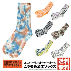 UNIVERSAL OVERALL ユニバーサルオーバーオール メンズ ソックス タイダイ ムラ染 リブ クルー丈 ロゴ入り 25-27cm ブランド 靴下 【P2-1