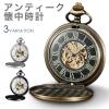 懐中時計 手巻き式 機械式 スケルトン ローマ数字 シンプル ポケットウォッチ アンティーク アクセサリー ネックレス チェーン 時計 かっ