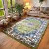 絨毯 8畳 ラグ 340×340cm 絨毯 厚手 極美 カーペット 37万ノット ウィルトン織 じゅうたん ブルー 青 緑 グリーン オリジナル アンティ