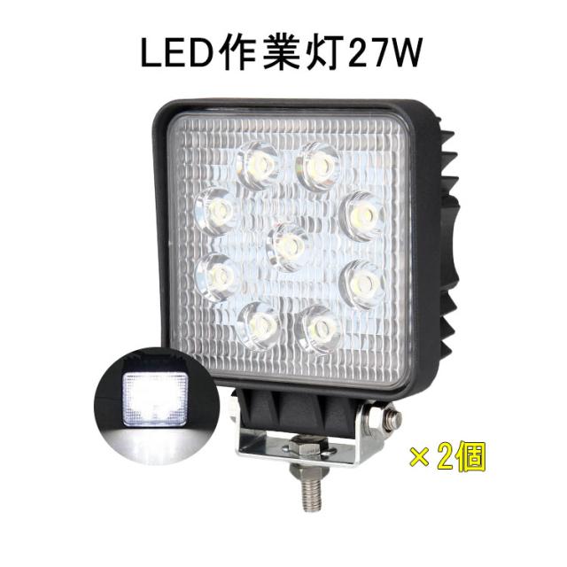 ※p1倍限定【翌日配達】作業灯 2台 広角 四角形 12v 24v led 投光器 27W 防水 ワーク ライト 車 アクセサリー ledライト スポットライト