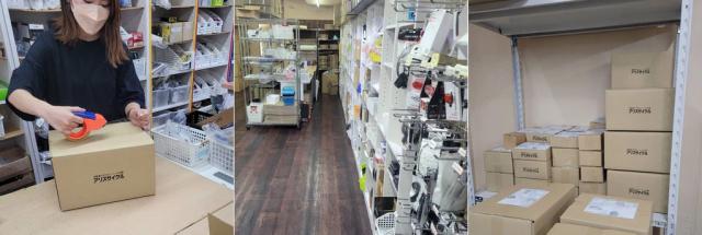 お掃除ロボットが可動する清潔な倉庫で梱包を行っています。