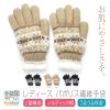 手袋 レディース 冬 おしゃれ 暖かい 保湿 ノルディック 雪柄 ボーダー ファー ボア 2重構造 日本製