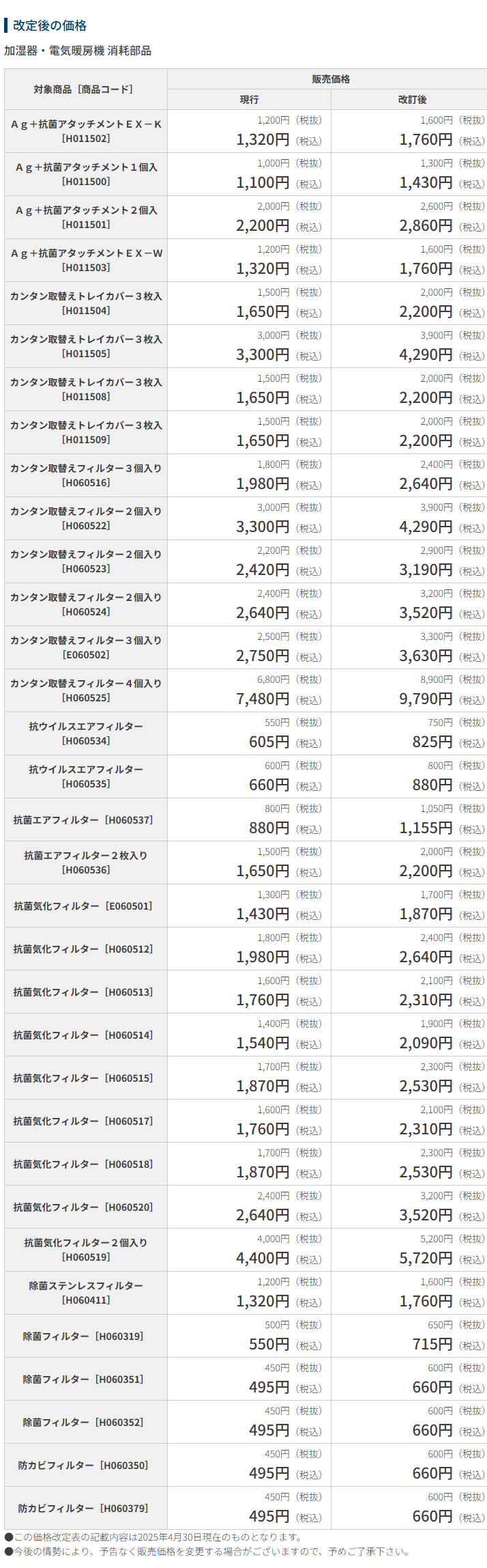 つきましては、今後の安定的な供給体制と製品品質を継続していくため、下記の通り価格改定を実施いたします。
