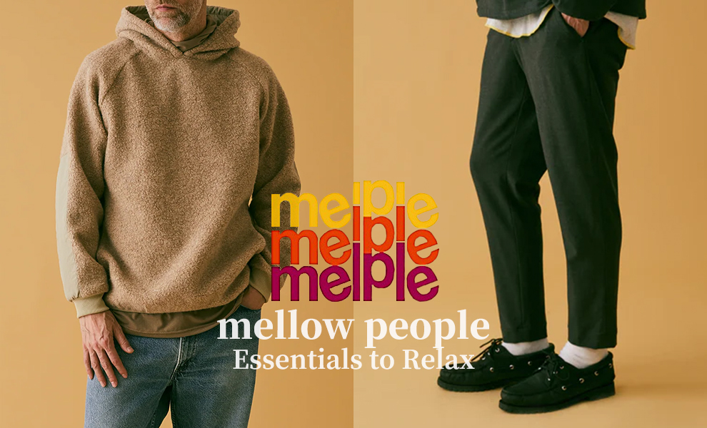2017年にmelpleの兄弟分的なブランドとして、世界に向けてブランドの世界観を発信するべく誕生した逆輸入的ブランドです。 Trip Couture」をテーマに、旅行やスポーツの要素を強めたコレクションを展開し、「カリフォルニアのメローな空気感」や「リラックス」といった要素を、日本の高い技術力と融合させたアイテムを提案しています。 タウンウェアでありながら、高機能な素材を用いて、リラックス感と上品さを兼ね備えたデザインが特徴です。 |