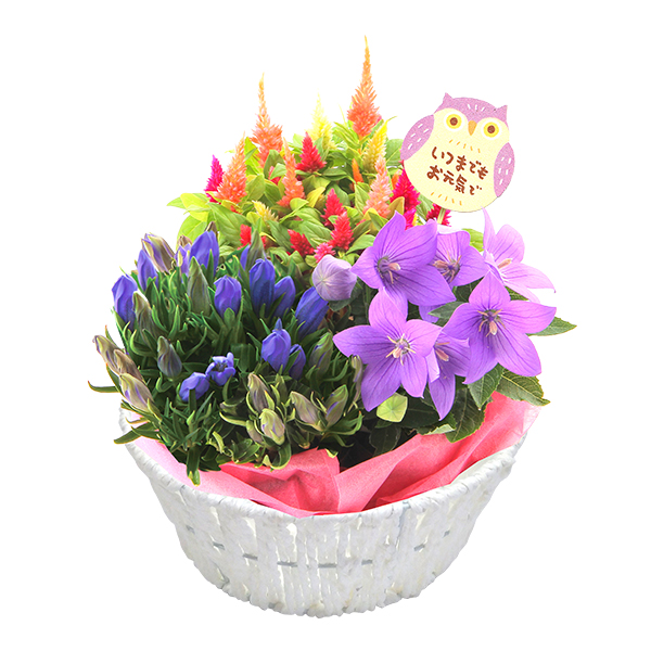9月に旬を迎えるリンドウをはじめ、敬老の日にふさわしい花を集めました。長寿を祝う「白寿」と同じ名前のついたリンドウや、部屋にあるだけでパッと華やぐ色の旬のお花を好みに合わせてチョイスできます。
