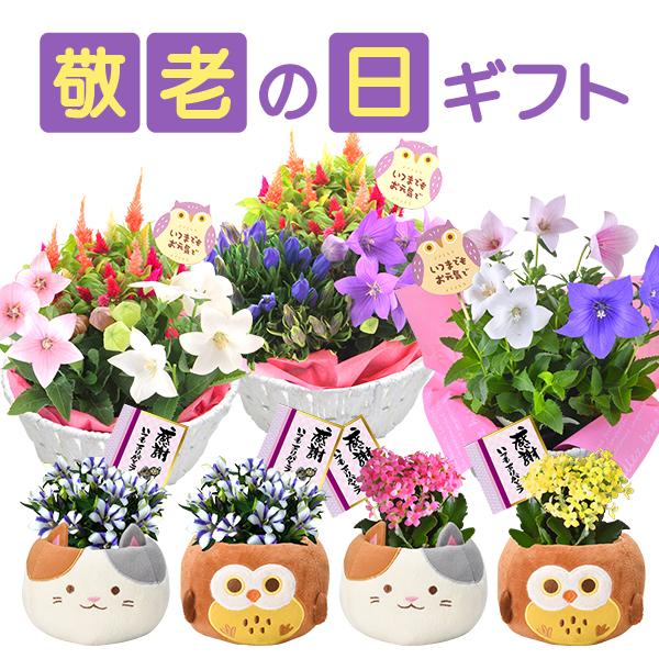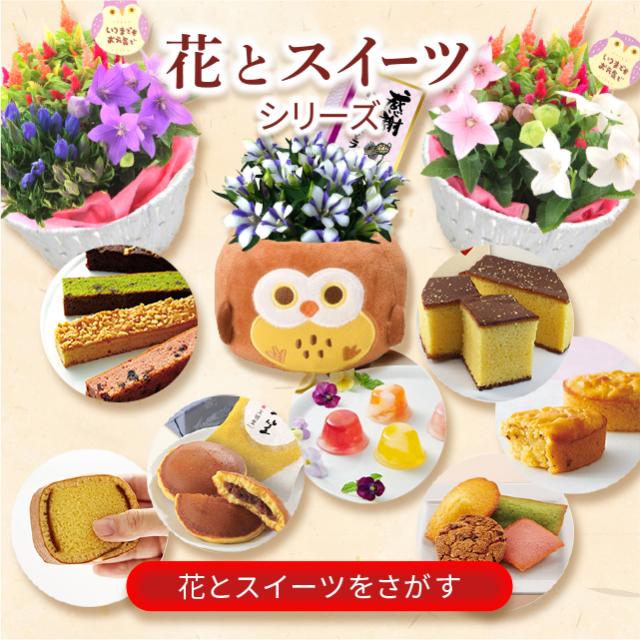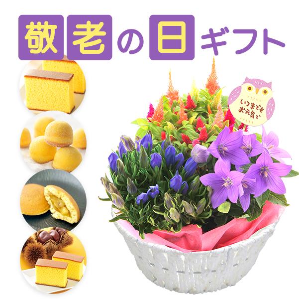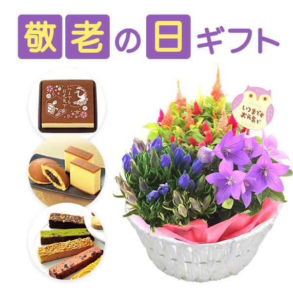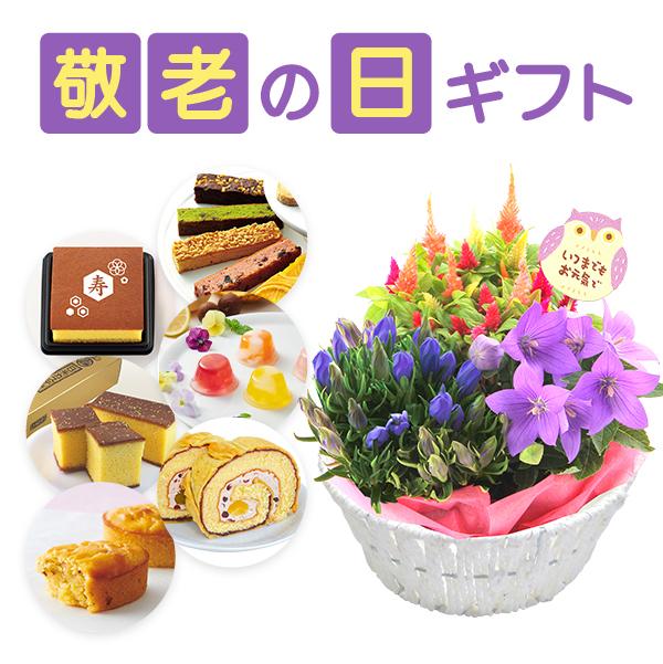 9月に旬を迎えるリンドウをはじめ、敬老の日にふさわしい鉢花とスイーツのセットをご用意いたしました。スイーツは和洋どなたにも喜ばれるラインアップとなっております。