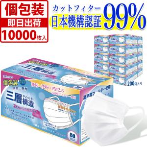 マスク 個包装 10000枚入(50枚箱入x200箱) 使い捨て 不織布 マスク 白 大人用 普通サイズ 三層構造 飛沫花粉対策 防護マスク 男女兼用 抗