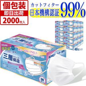 マスク 個包装 2000枚入(50枚箱入x40箱) 使い捨て 不織布 マスク 白 大人用 普通サイズ 三層構造 飛沫花粉対策 防護マスク 男女兼用 抗菌