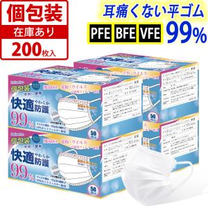 マスク 個包装 200枚入(50枚箱入x4箱) 使い捨て 不織布 マスク 白 大人用 普通サイズ 三層構造 飛沫花粉対策 防護マスク 男女兼用 抗菌通
