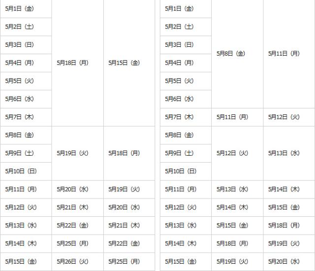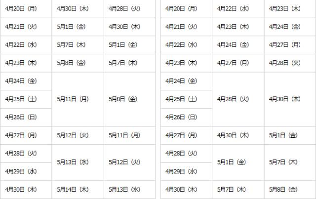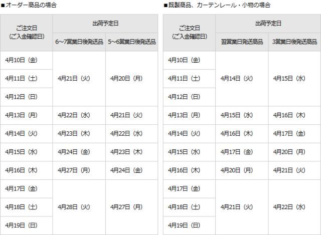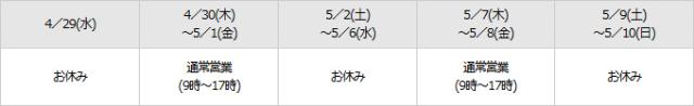 ゴールデンウィーク期間中の発送及びお問い合わせは以下のようになっております。