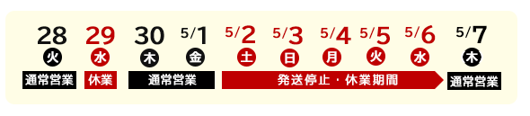 5月1日(金)正午以降のご注文やお支払確定の場合は、5月7日(木)より順次発送させていただきます。