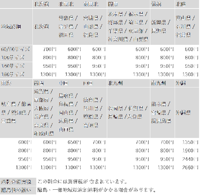 【佐川急便 送料料金表】