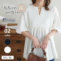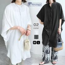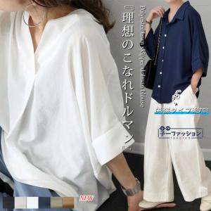 開襟タイプ追加!ブラウス ドルマンスリーブ 夏新作 新作 キーネック プルオーバー 半袖 レディース トップス シャツ ロングシャツ ゆっ