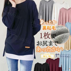 <1点1,790円!クーポン利用で>カットソー 長袖 Tシャツ レディース トップス おしりが隠れる レイヤード風 重ね着 サイドスリット 前後