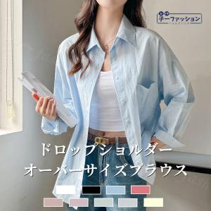 シャツ ドロップショルダー 夏 春 秋 新作 ブラウス トップス レディース こなれ感 抜け感 チュニック 長袖 着痩せ ゆったり 体型カバー