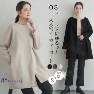ノーカラーコート ロングコート 冬新作 新作 レディース アウター ミディアム丈 無地 羽織りロング ゆったりコート ジャケット 防寒 抜