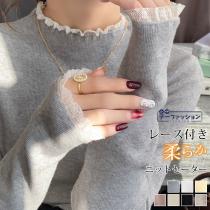 <1点あたり1,590円!2点同時購入&クーポン利用で>ニットセーター レース付き ハイネック インナー 無地 レースフリル襟 レディース 長
