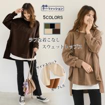 <1点2,650円!クーポン利用で>トレーナー 長袖 サイドスリット 冬新作 スウェット レディース カジュアル カーブしたフロント プルオー
