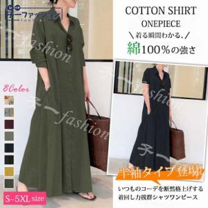<1点3,050円!クーポン利用で>シャツワンピース 新作 長袖 半袖 マキシワンピース レビュー特典 選べる6色 ワンピース 大きいサイズ レ