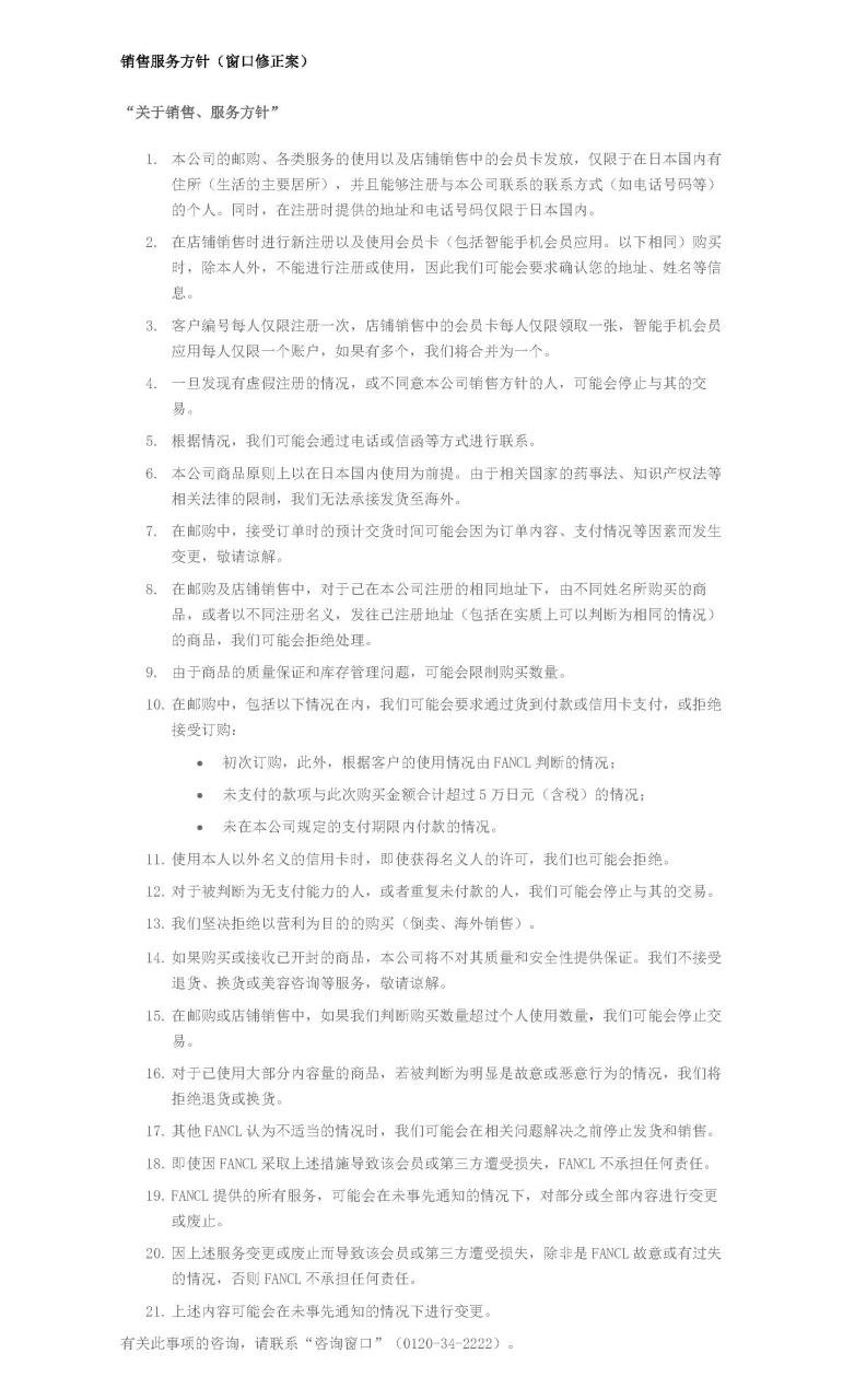 その他ファンケルが不適当と判断した場合、当該事由が解消するまで出荷及び販売を見合わせることがあります。 |
