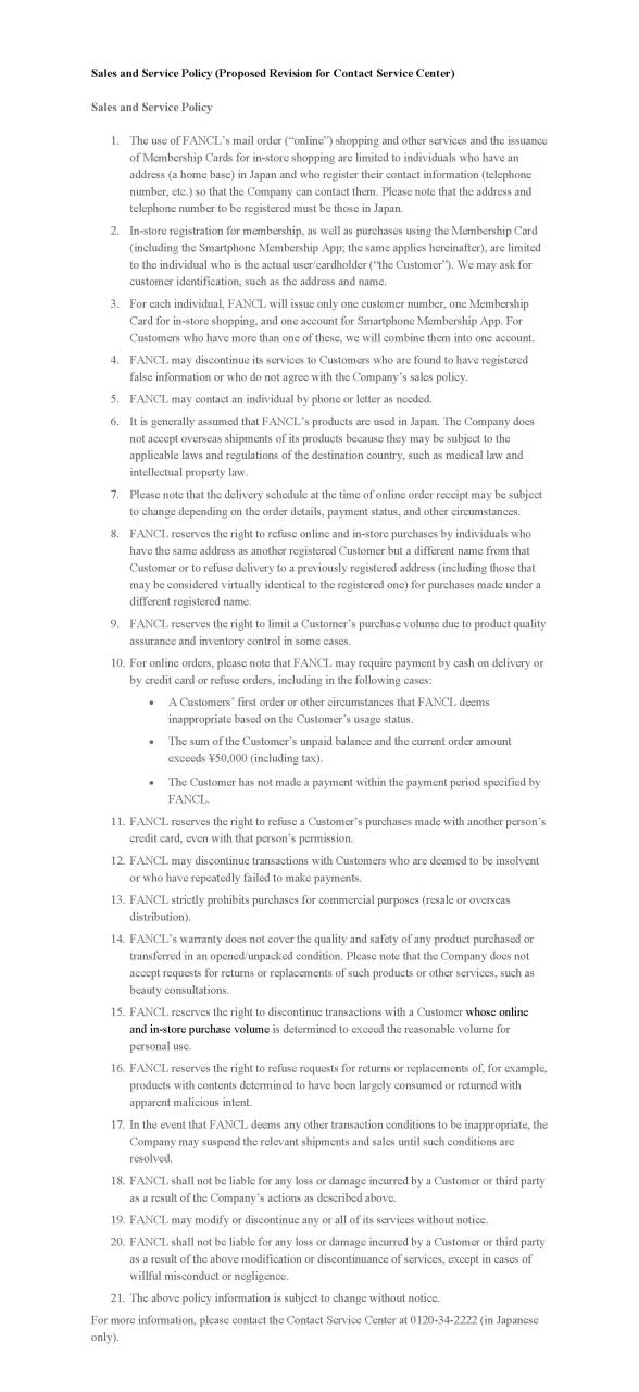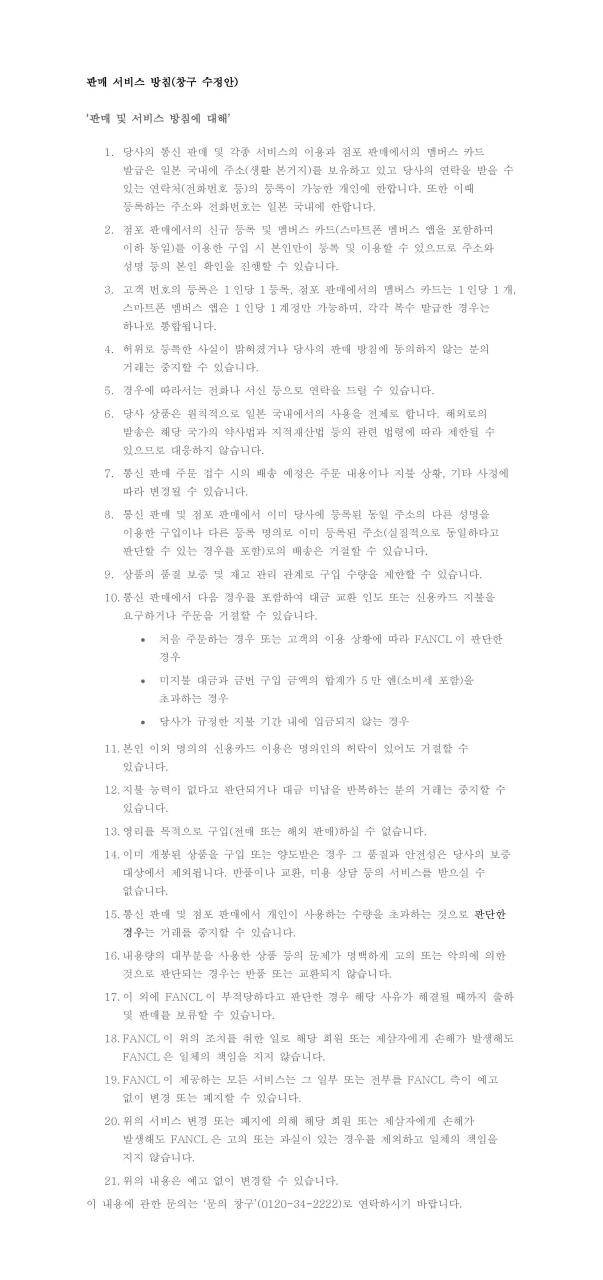 ファンケルが上記の措置をとったことで、当該会員または第三者に損害が発生したとしても、ファンケルは一切の責任を負わないものとします。 |