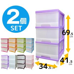深型収納ケース3段 2個セット