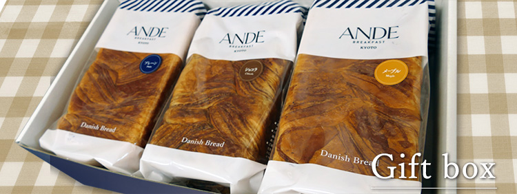 アンデのデニッシュ食パンをギフトセットとしてお贈りできる「ギフトボックス」や、デニッシュ食パンを大切に