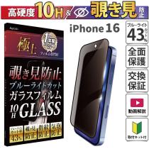 iPhone 16 ガラスフィルム 全面保護 覗き見防止 ブルーライトカット かんたん 安心 日本製 スマホフィルム 強化ガラス のぞき見 保証 ア