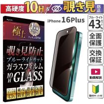 iPhone 16 Plus ガラスフィルム 全面保護 覗き見防止 ブルーライトカット かんたん 安心 日本製 スマホフィルム 強化ガラス のぞき見 保