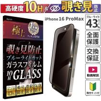 iPhone 16ProMax ガラスフィルム 全面保護 覗き見防止 ブルーライトカット かんたん 安心 日本製 スマホフィルム 強化ガラス のぞき見 保