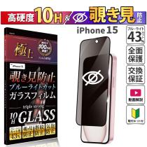 iPhone 15 Pro ガラスフィルム 全面保護 覗き見防止 ブルーライトカット かんたん 安心 日本製 スマホフィルム 強化ガラス のぞき見 保証