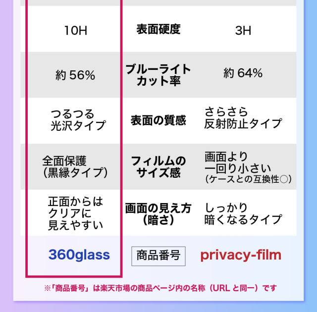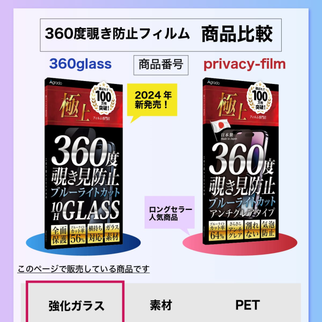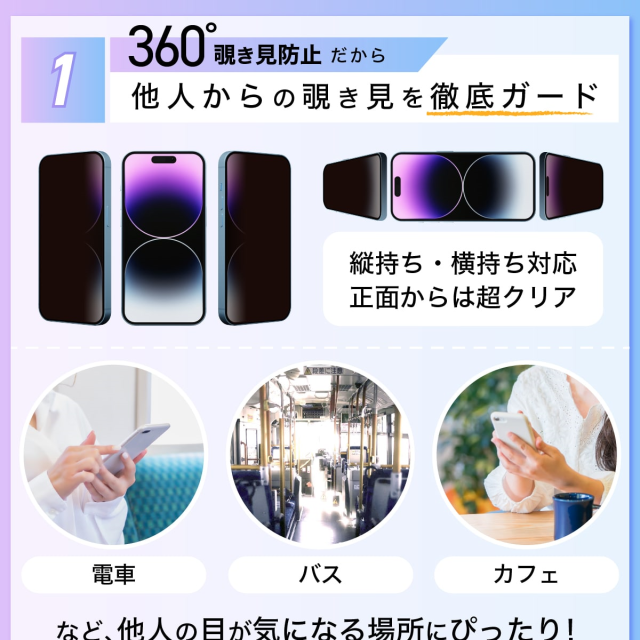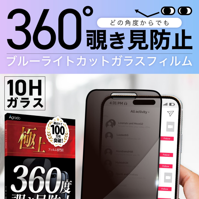| 全面保護 硬度10Hガラス使用 360度全方位覗き見防止ガラスフィルム特集 |