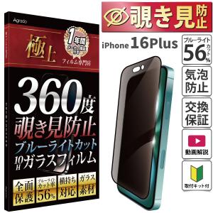 iPhone 16 Plus ガラスフィルム 覗き見防止 ブルーライトカット かんたん どの角度からも安心 プライバシー 全面保護 保護フィルム スマ