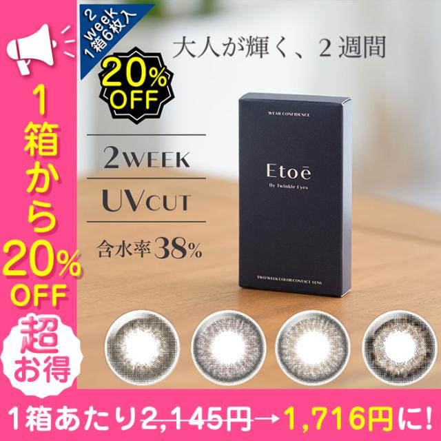 20%OFF カラコン 2week 度あり etoe エトエ 1箱6枚入り 14.2mm BC8.6 2週間 UV モイスト ナチュラル ブラウン 最短翌日発送 アウトレット
