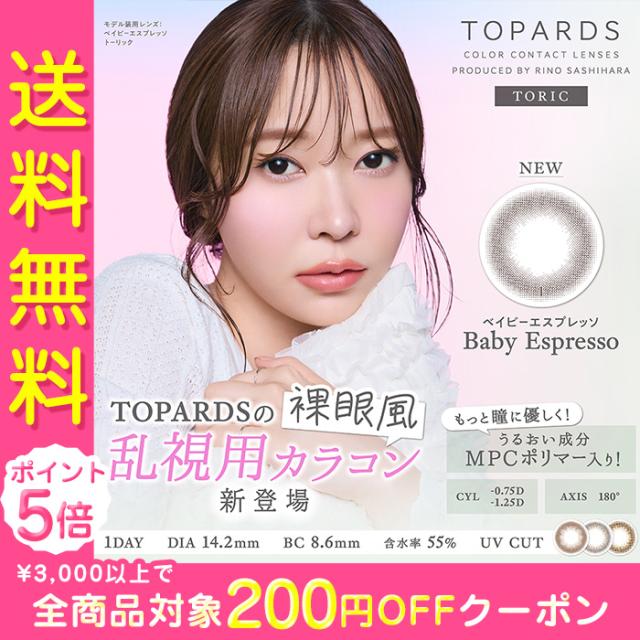 【ポイント5倍】乱視 カラコン ワンデー 度あり トパーズ トーリック TOPARDS UV さっしー 指原莉乃 1箱10枚入り 14.2mm BC8.6 ブラウン