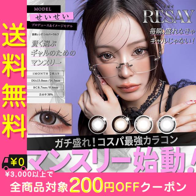 カラコン 1ヶ月 度あり 度なし RESAY リセイ せいせい 田向星華 DIA14.5mm 15.0mm BC8.6 BC8.7 1箱2枚入り 低含水 高発色 フチあり 大人