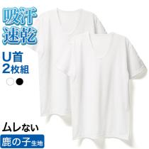 送料無料 鹿の子 U首 半袖 Tシャツ 2枚 セット メンズ 春夏 肌着 下着 インナー 消臭 吸汗 速乾 紳士 男性 綿混 Uネック 父の日 ギフト